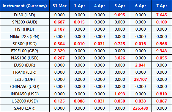 Please be advised that the following instruments’ trading hours and market session times will be affected by the upcoming Easter Holidays.