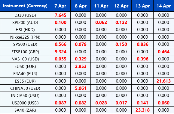 Please be advised that the dividends of the following index CFDs will be adjusted by upcoming ex-dividend dates. The comment for trading index CFDs will be in the following format “Div&<Product Name>&<Net Volume>” which show in the balance after the close of the day before the dividend payment date.